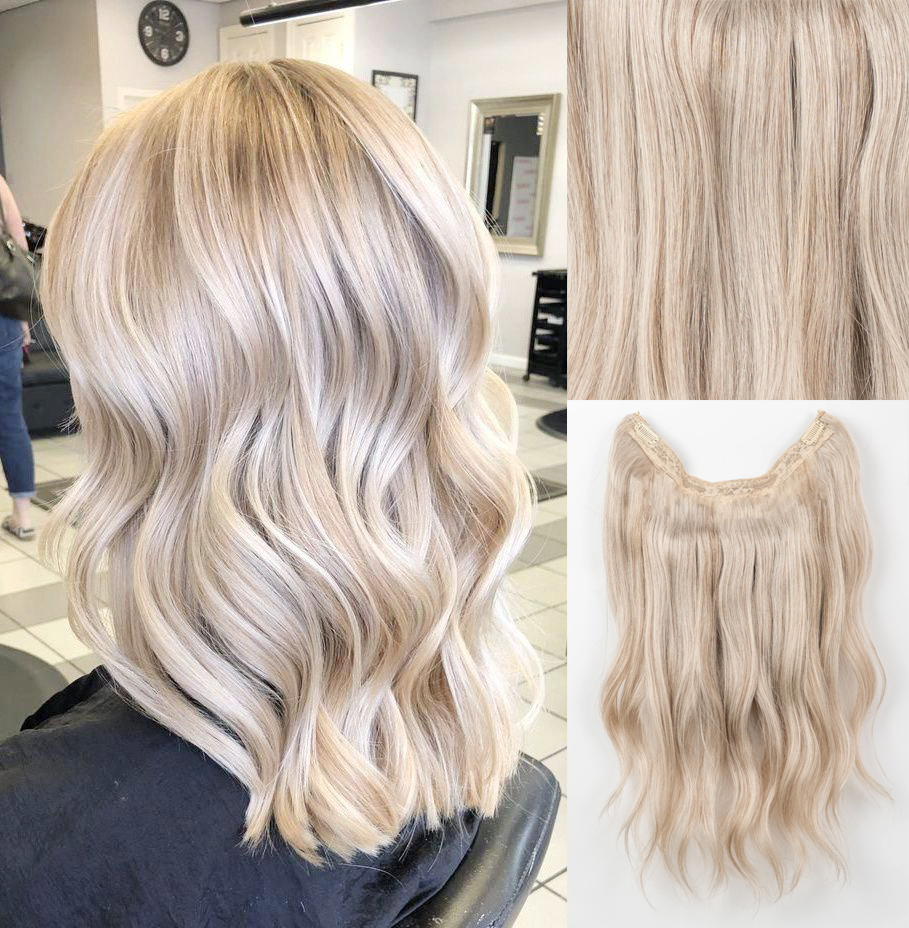A: Halo extensions are a lower maintenance alternative to our clip-in extensions. Instead of having to clip in multiple wefts to ensure a seamless blend, all you need to do is apply the Halo in a matter of seconds. Halo extensions are also great for those with thin and fragile hair and for those who have a sensitive scalp and find it hard-wearing clip-in extensions. They are best for those who have below shoulder-length hair and have a thin or medium hair type.