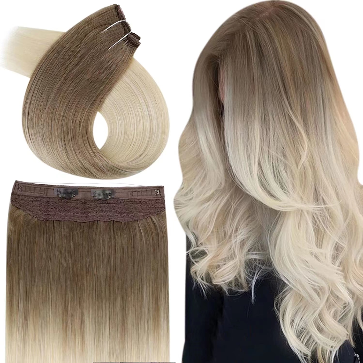 The Layered Human Halo Hair Lightweight And Breathable Remy Halo Hair Extensions